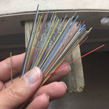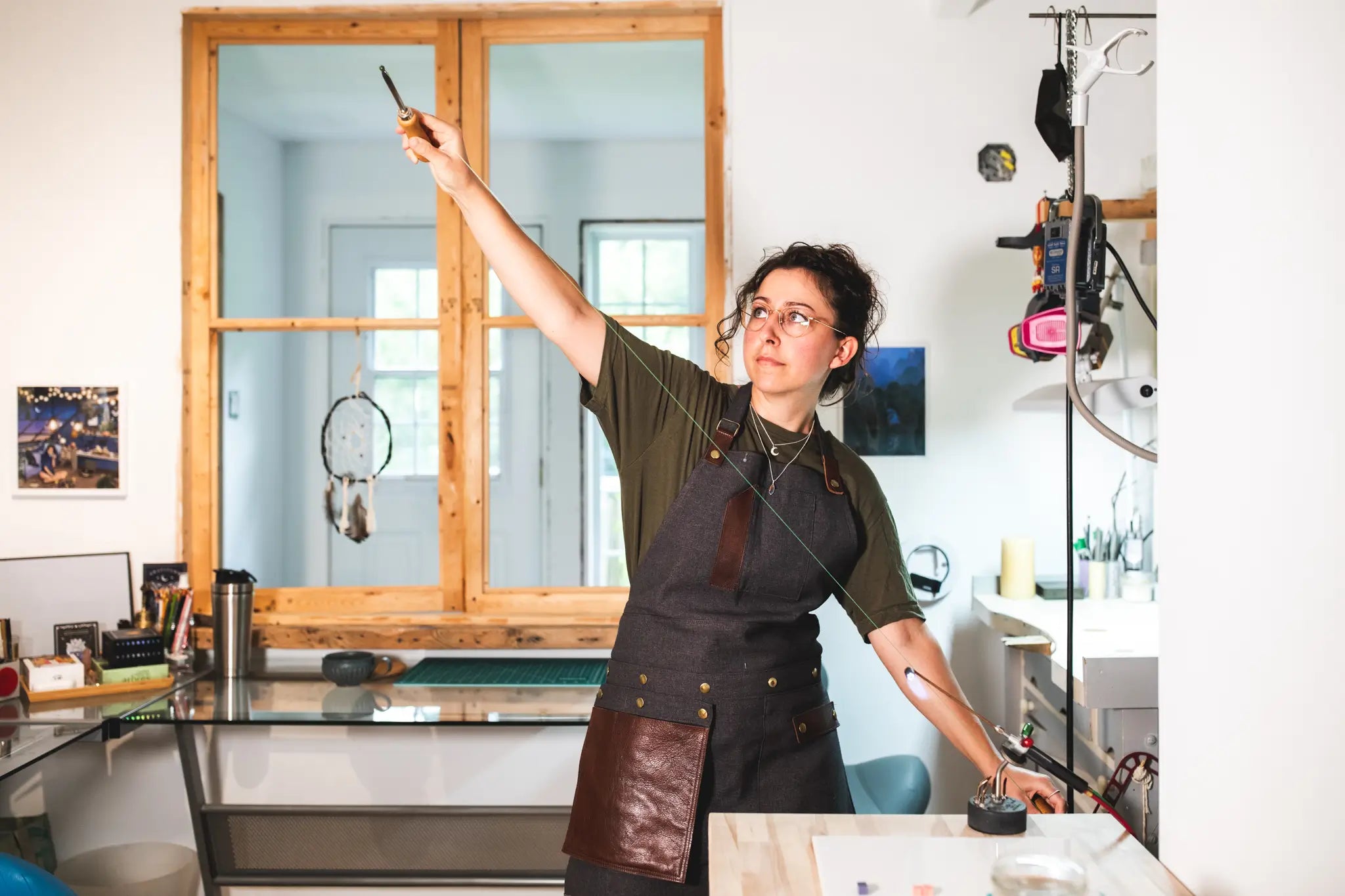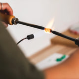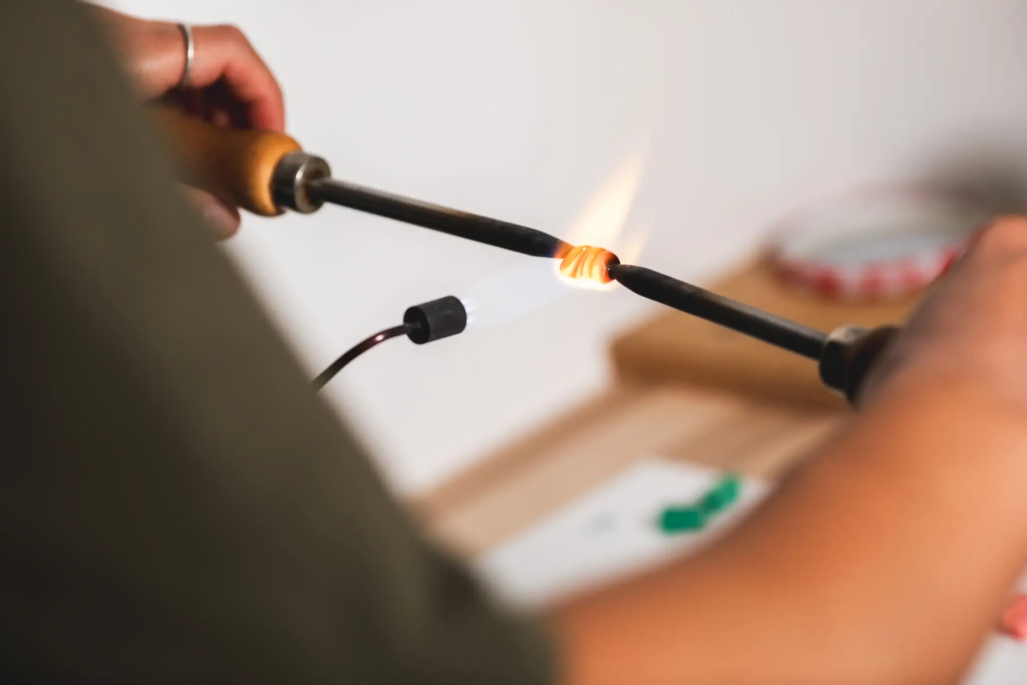 La micro-mosaïque demande une précision sans faille. Nous utilisons des morceaux de verre particuliers qu'on appelle Smalti. Ce verre est chauffé au chalumeau et étiré jusqu’à obtenir des fils ultra-fins, mesurant moins d’un millimètre de diamètre.
