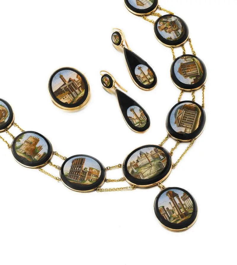 Les micro-mosaïques sont un art raffiné né à Rome à la fin du XVIIIe siècle, une technique qui a rapidement gagné en popularité au cours du XIXe siècle, notamment grâce au phénomène du Grand Tour. Mais avant d'entrer dans le détail de cette technique fascinante, replongeons-nous dans cette période historique qui a contribué à sa renommée.