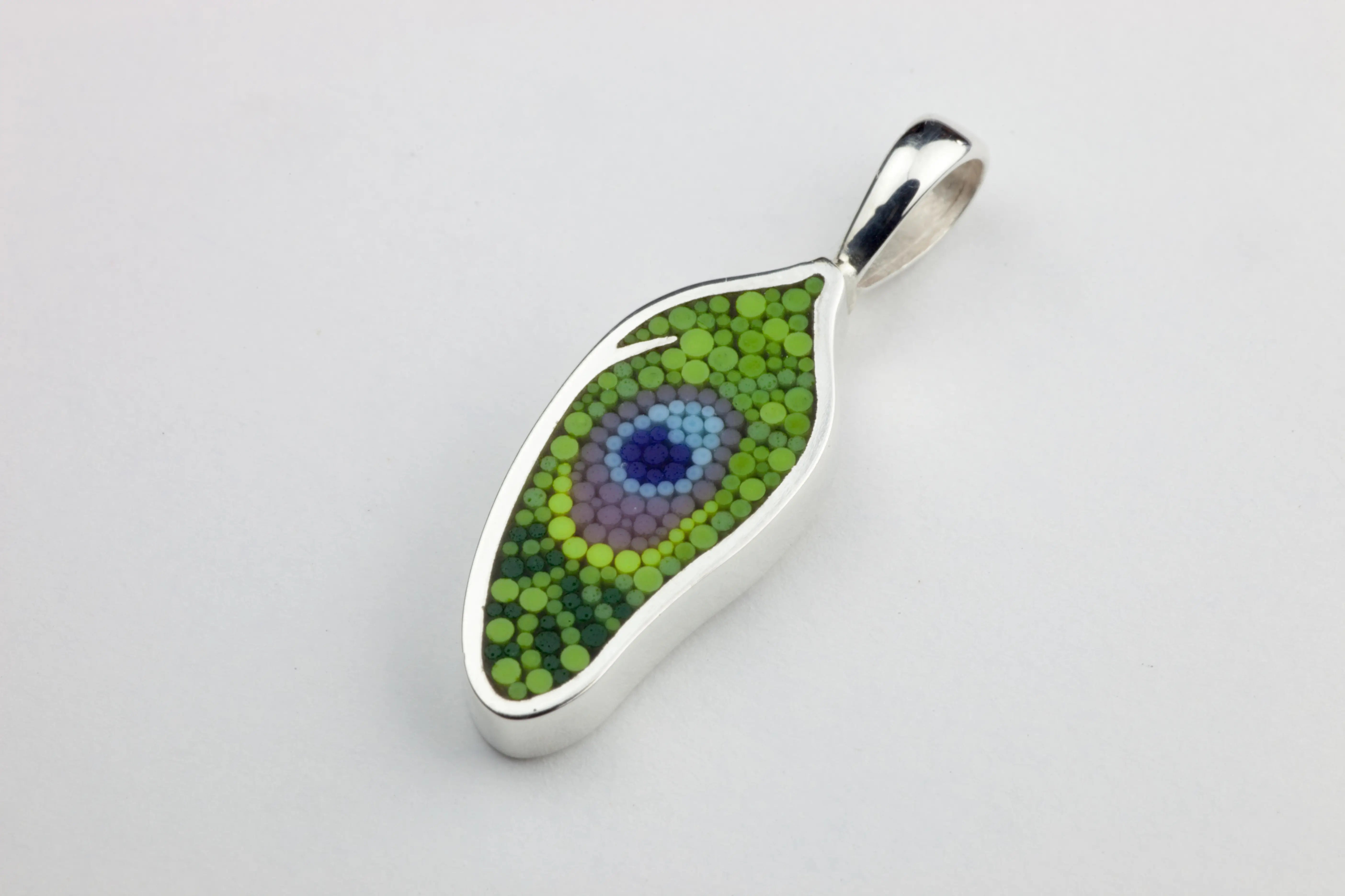 Chez Yonomori Joaillerie, chaque pièce utilisant la micro-mosaïque de verre est le fruit de nombreuses heures de travail minutieux. Nous associons cette technique à des designs modernes et des matériaux précieux pour créer des bijoux qui racontent une histoire, celle d’une tradition italienne qui traverse les siècles.