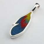 Pendentif Plume 19 en argent sterling et micro-mosaïque de verre, avec chaîne en argent sterling.