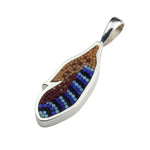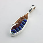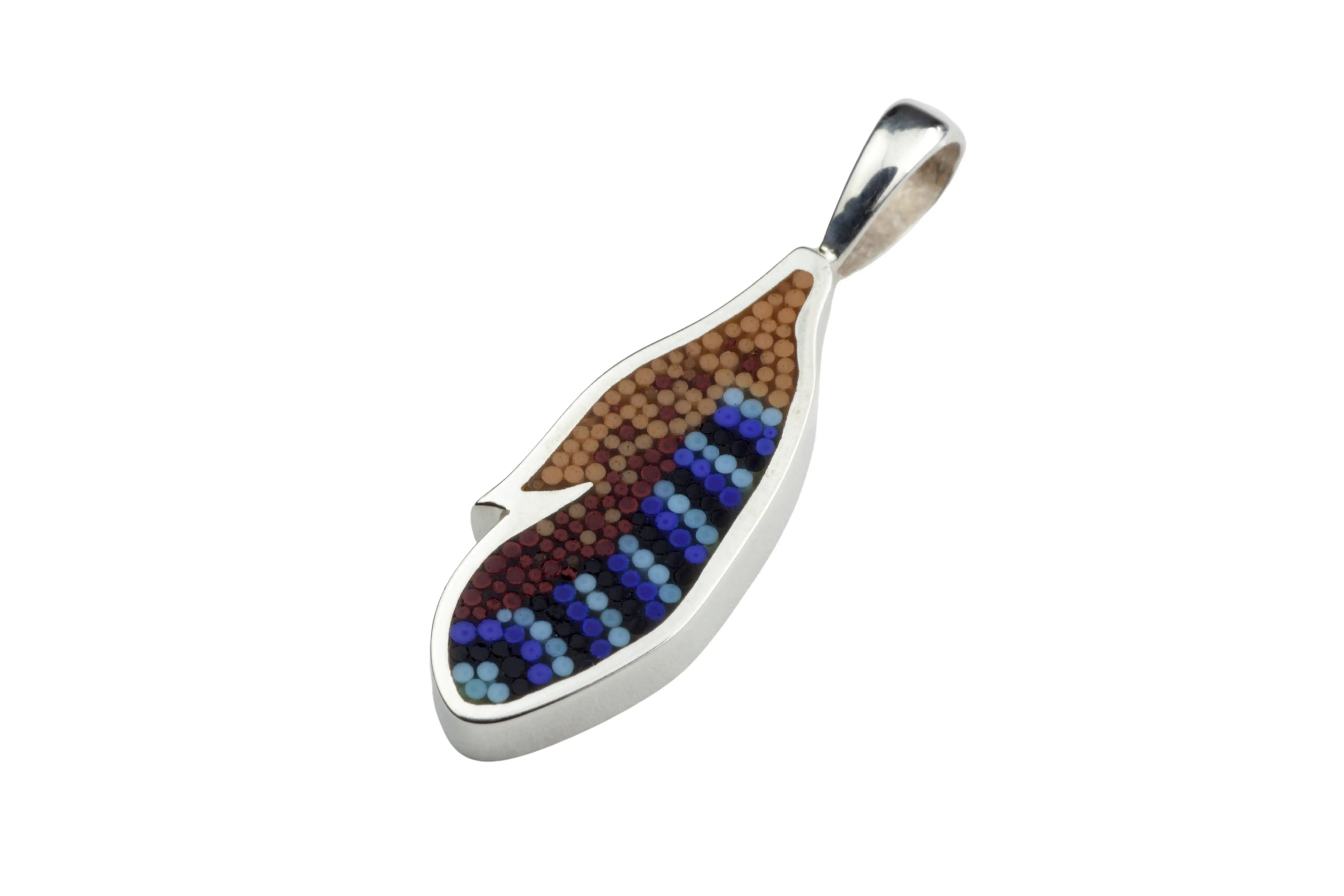 Pendentif Plume 3 en argent sterling et micro-mosaïque de verre, avec chaîne en argent sterling.