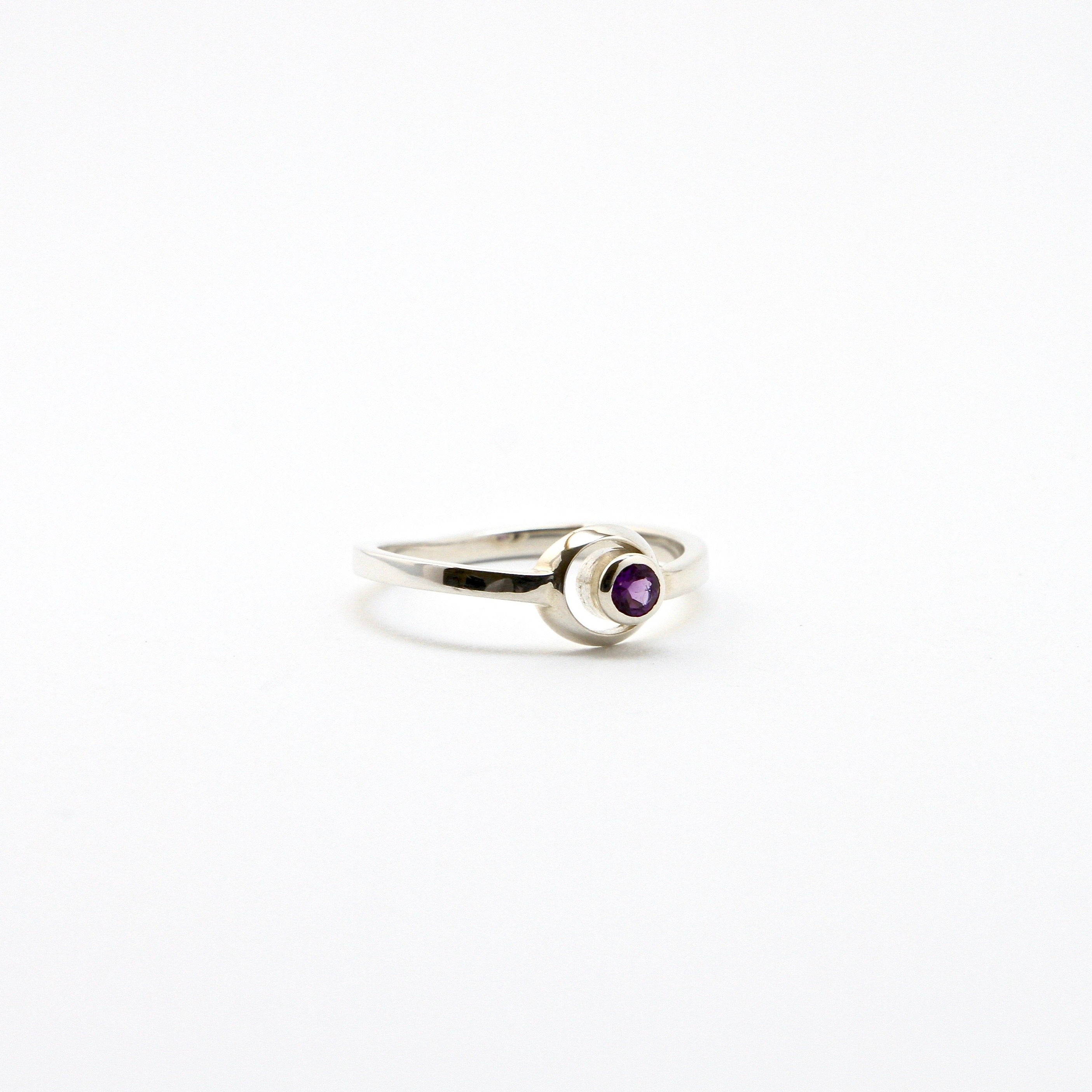 Bague LUNA , argent sterling et pierre semi-précieuse, bague sertie d'une améthyste. Bague de fiançailles, mariage, pierre fine.