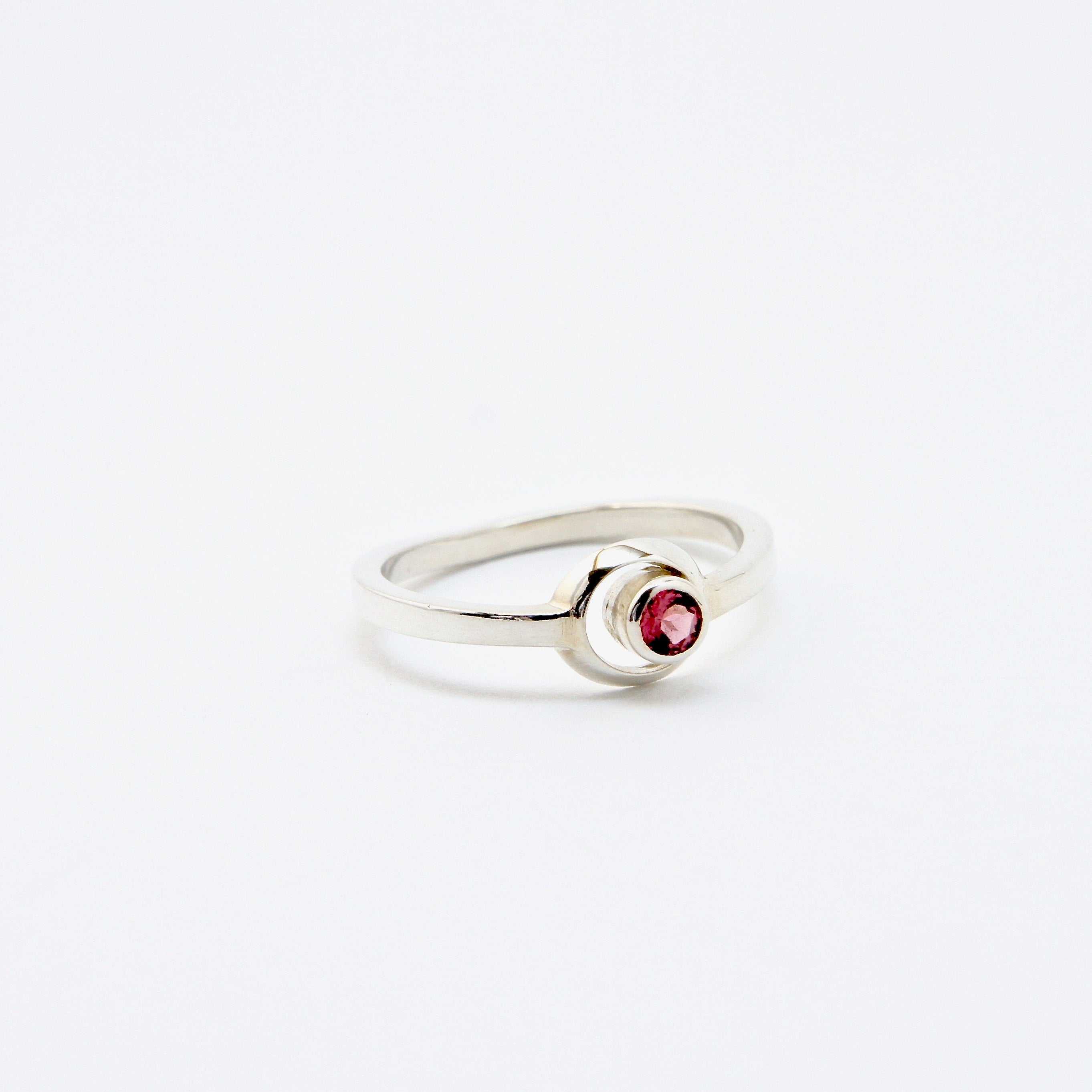 Bague LUNA , argent sterling et pierre semi-précieuse, bague sertie d'un grenat rouge. Bague de fiançailles, mariage, pierre fine.