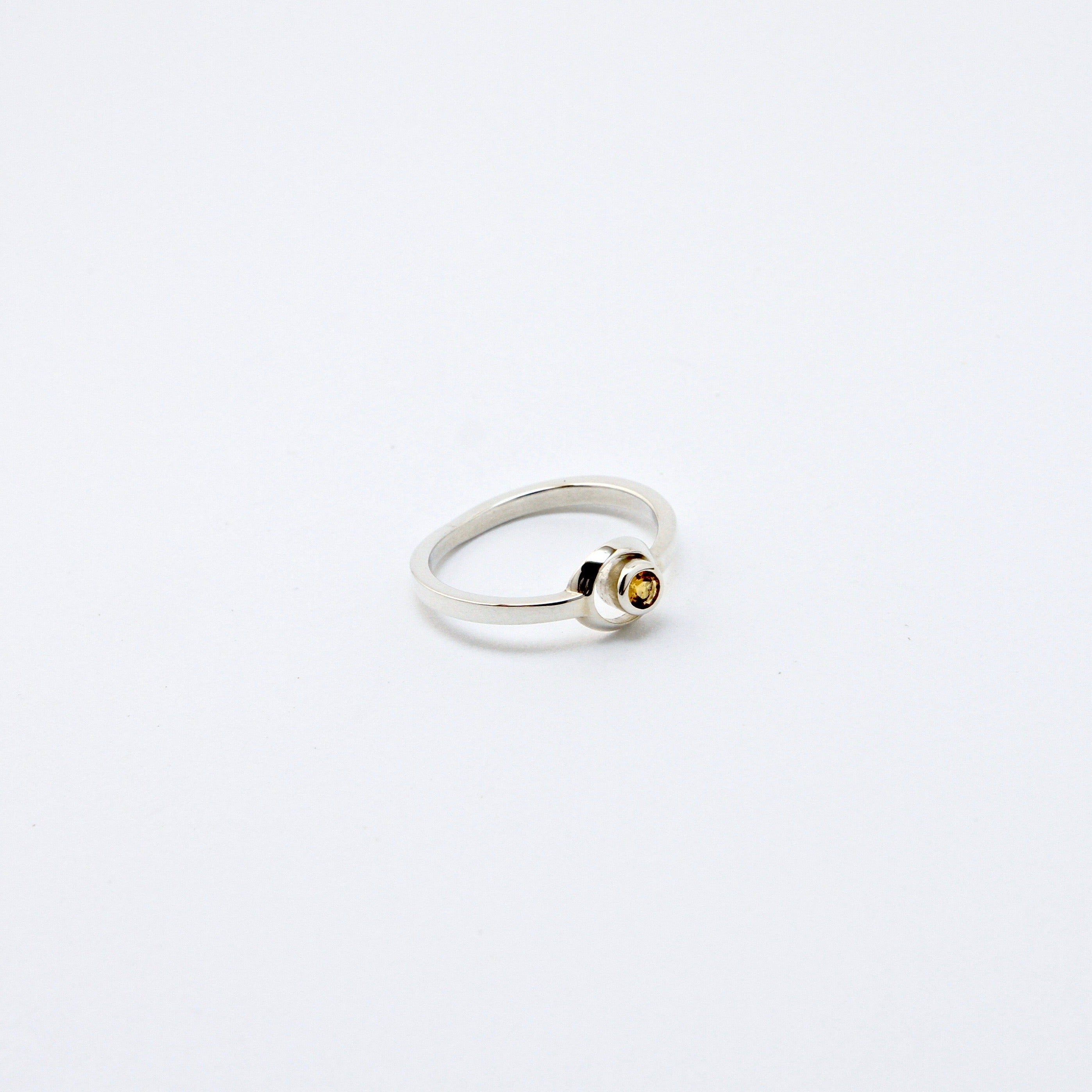 Bague LUNA , argent sterling et pierre semi-précieuse, bague sertie d'une citrine. Bague de fiançailles, mariage, pierre fine.