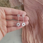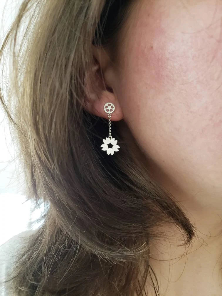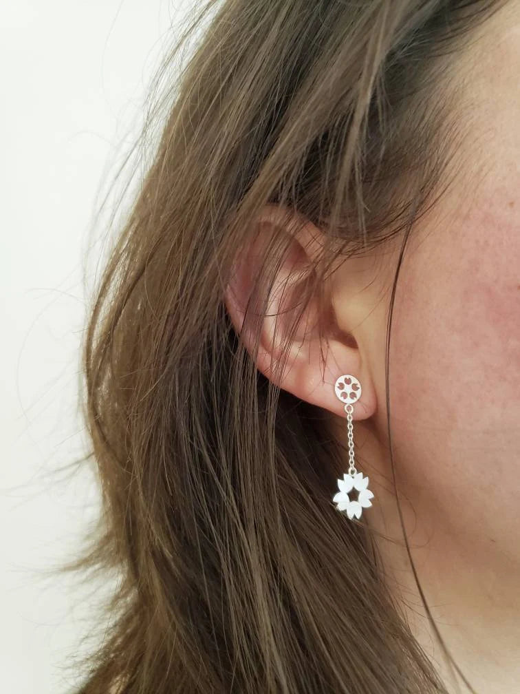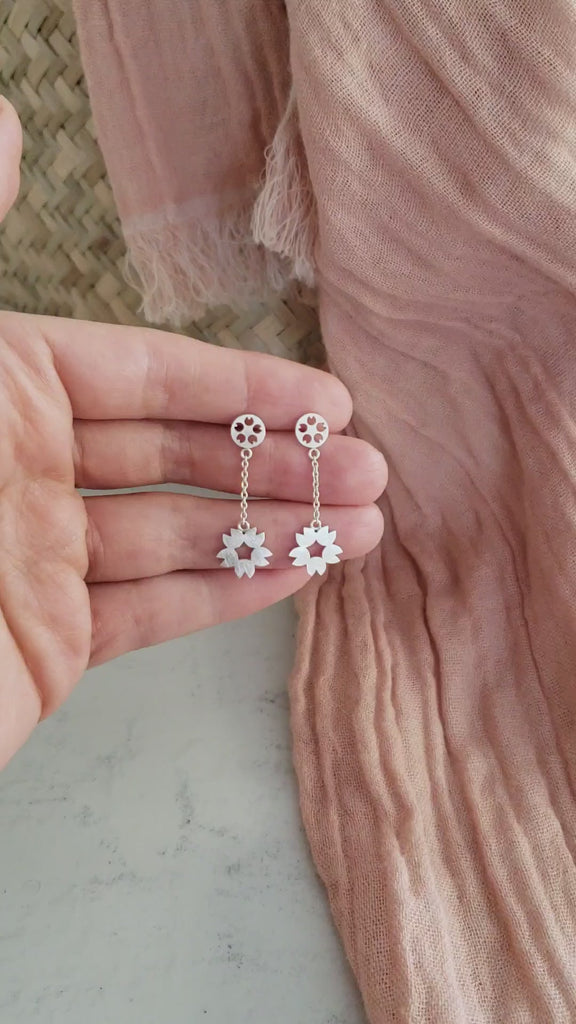 Boucles d'oreilles pendantes Sakura, fleurs de cerisier, argent sterling, bijou d'inspiration Japonaise.
