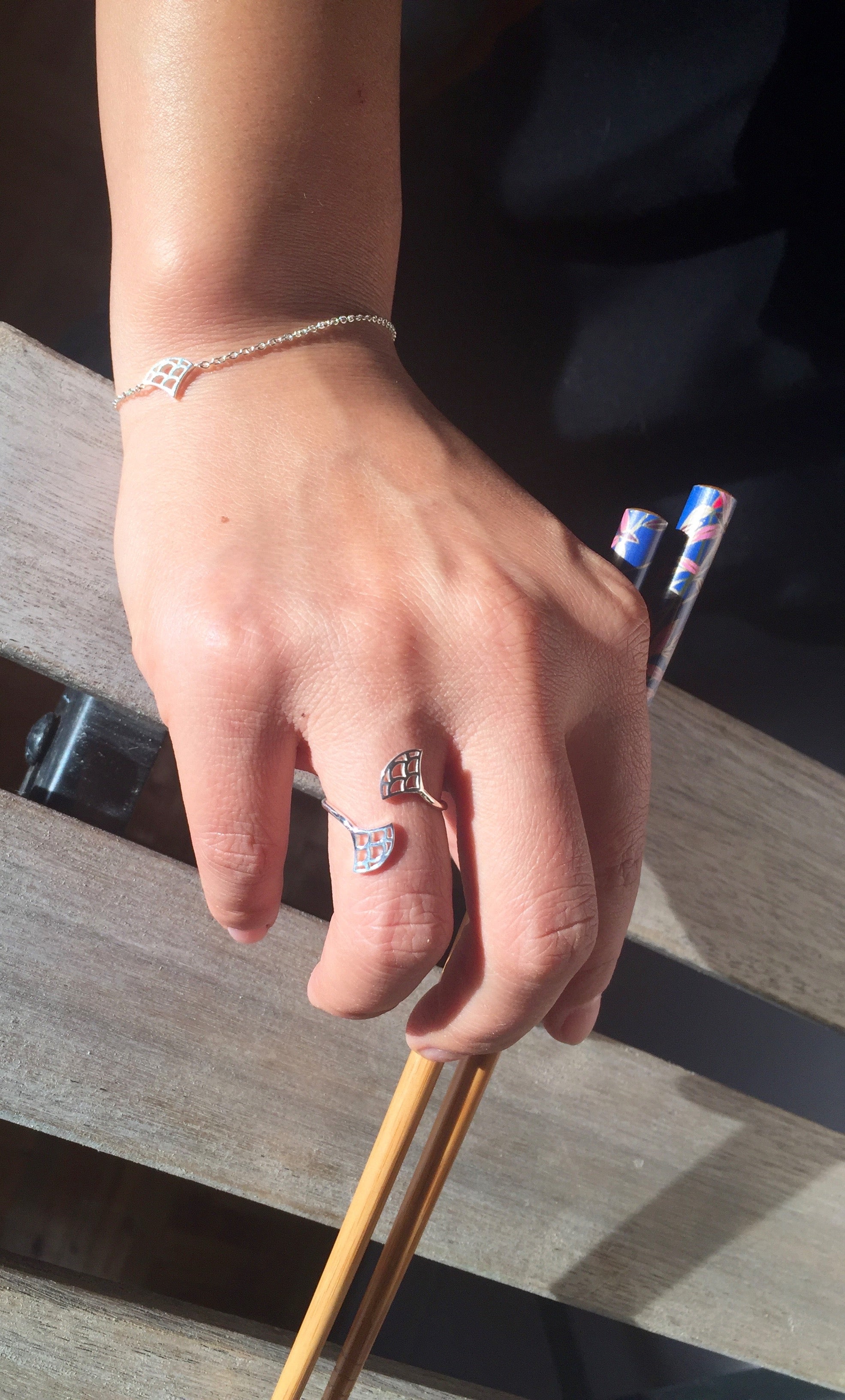 Bague double Vague Seigaiha, argent sterling, inspiration Japon. Bague ouverte.