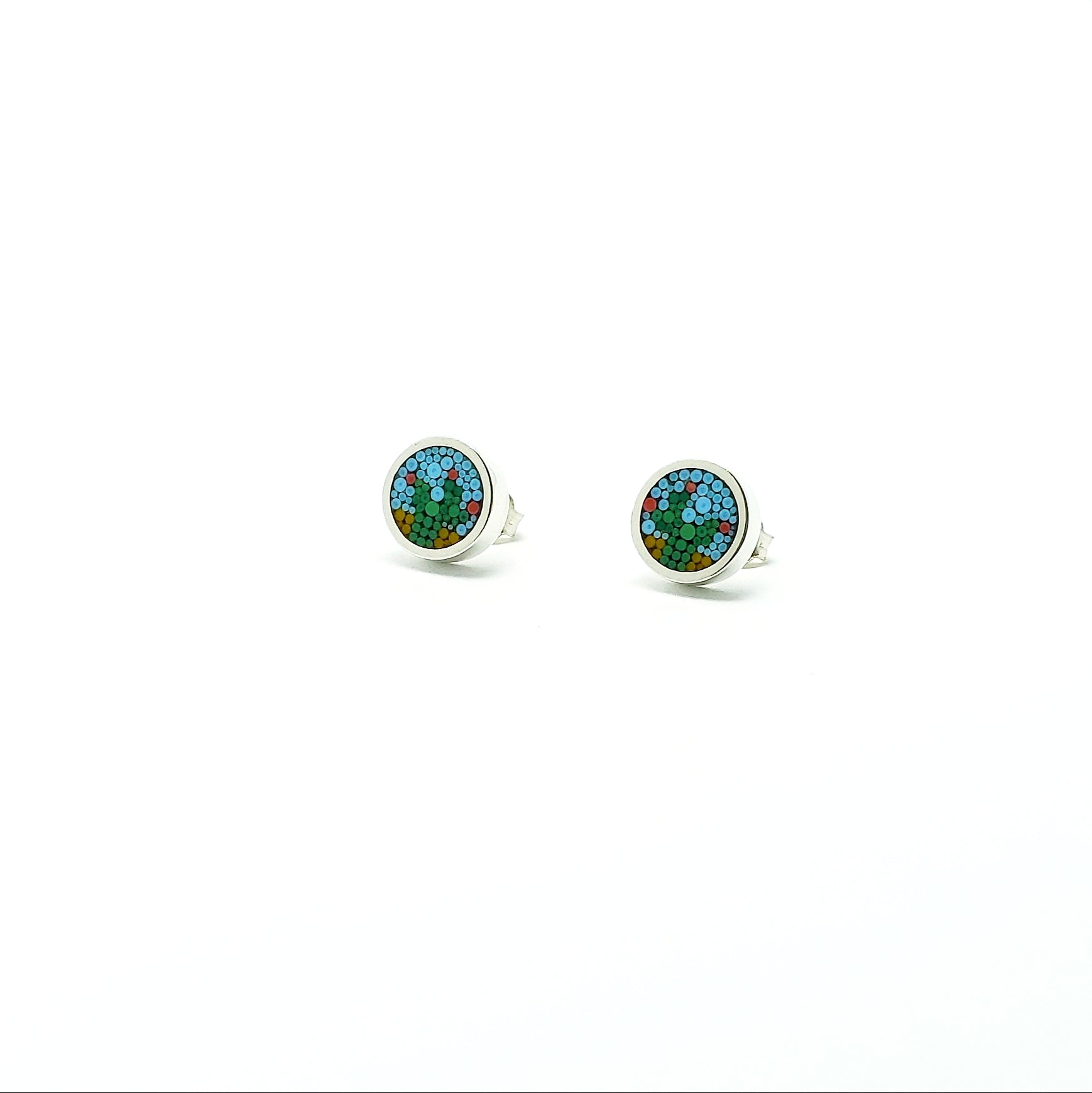 Boucles d'oreille cactus en micro-mosaïque de verre et argent sterling. Puces d'oreille rondes n.5.