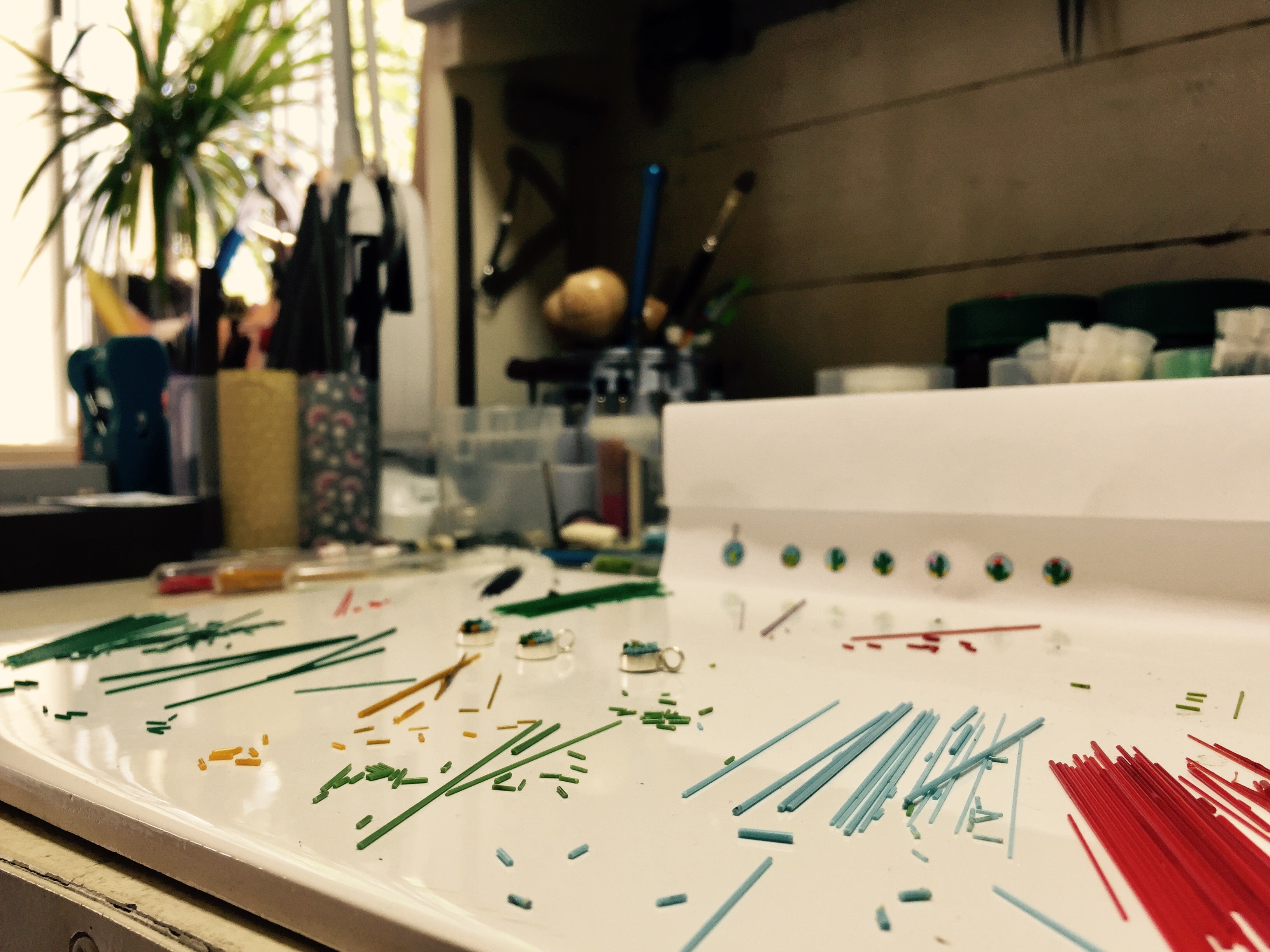 La micro-mosaïque est une technique artisanale italienne ancienne, qui consiste à travailler le verre au chalumeau pour l'étirer en fils ultra-fins, de moins d'un millimètre de diamètre. Ces fils sont ensuite coupés en petites sections de quelques millimètres, on les appelle "Tesserae".