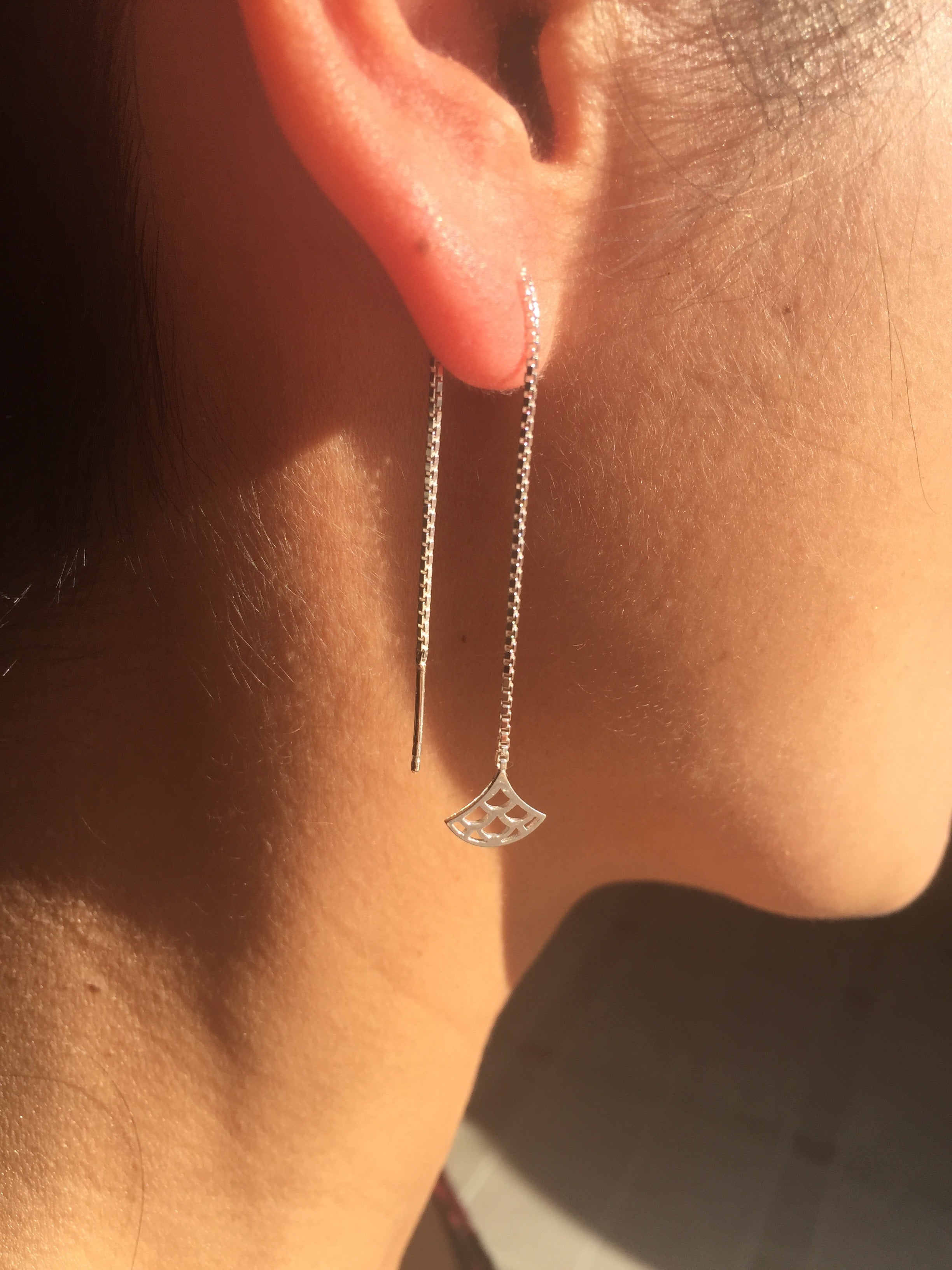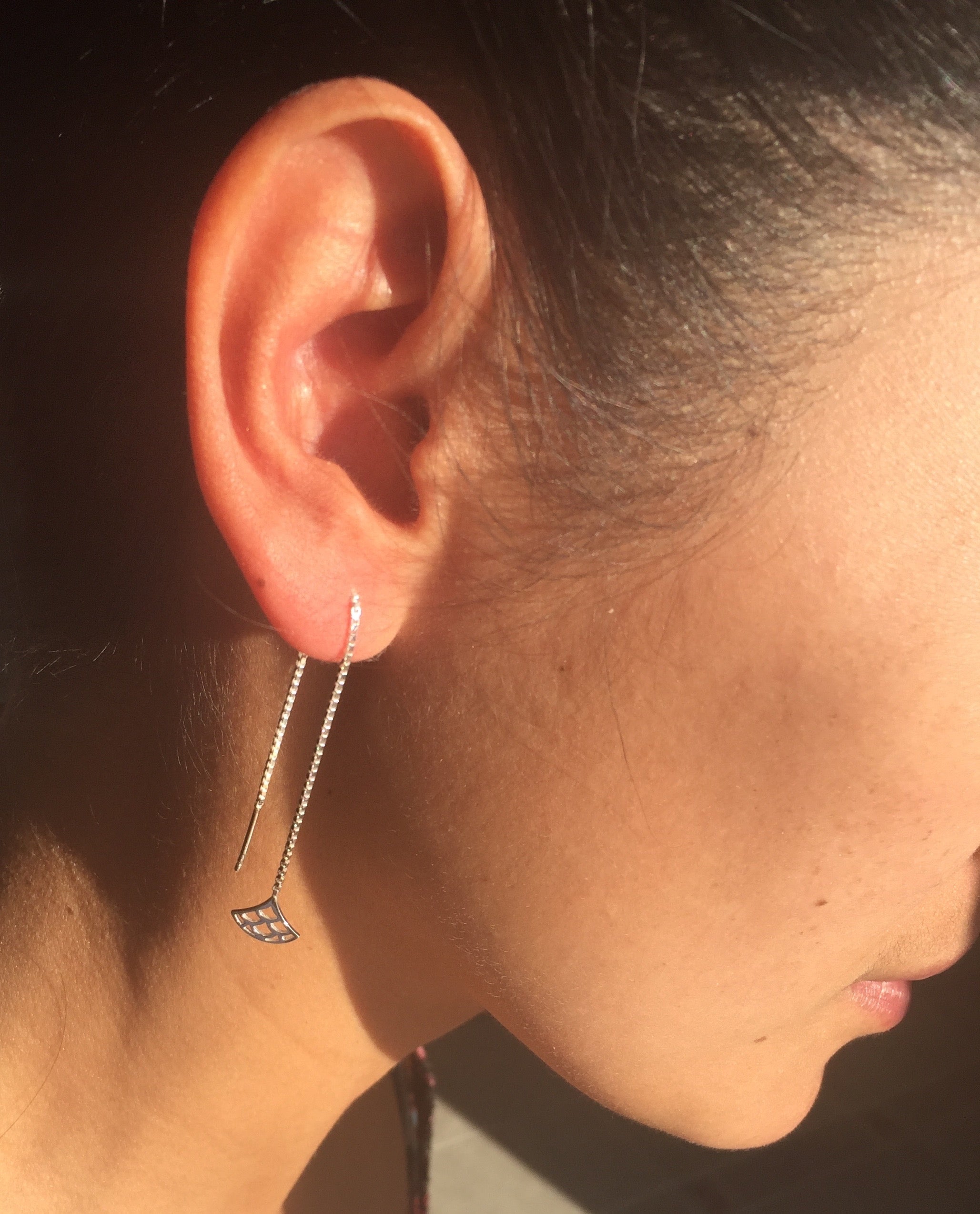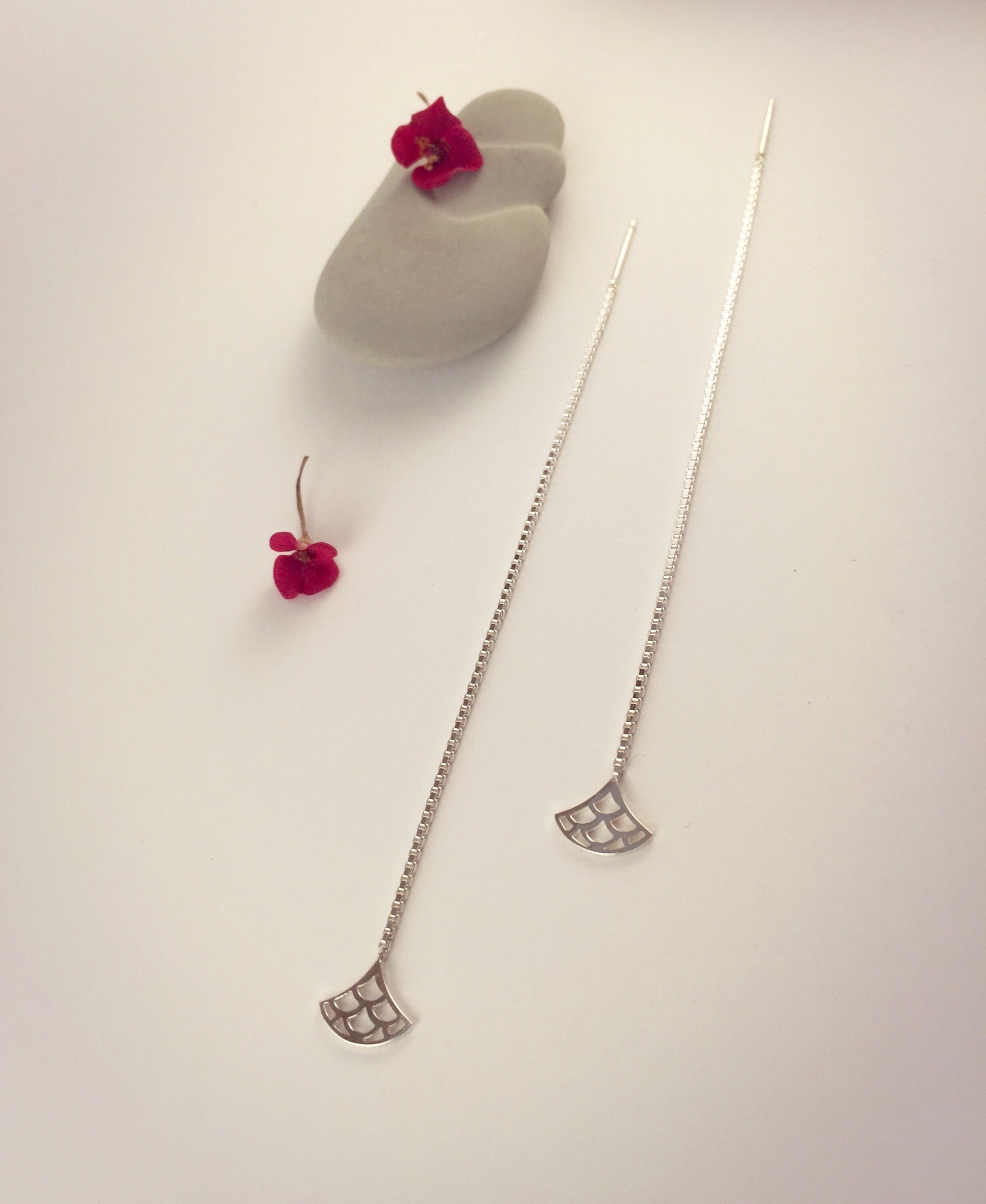 Enfile aiguille boucles d'oreille Vague Seigaiha , argent sterling, inspiration Japon. Bijoux minimalistes.